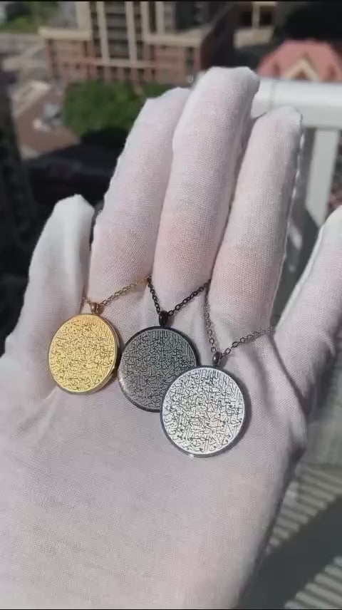 Carry the power of one of the most sacred verses of the Holy Qur’an close to your heart. Our Ayat-ul-Kursi Pendant features beautifully engraved Arabic calligraphy of Surah Al-Baqarah (2:255), a verse known for its spiritual strength, divine protection, and deep meaning.