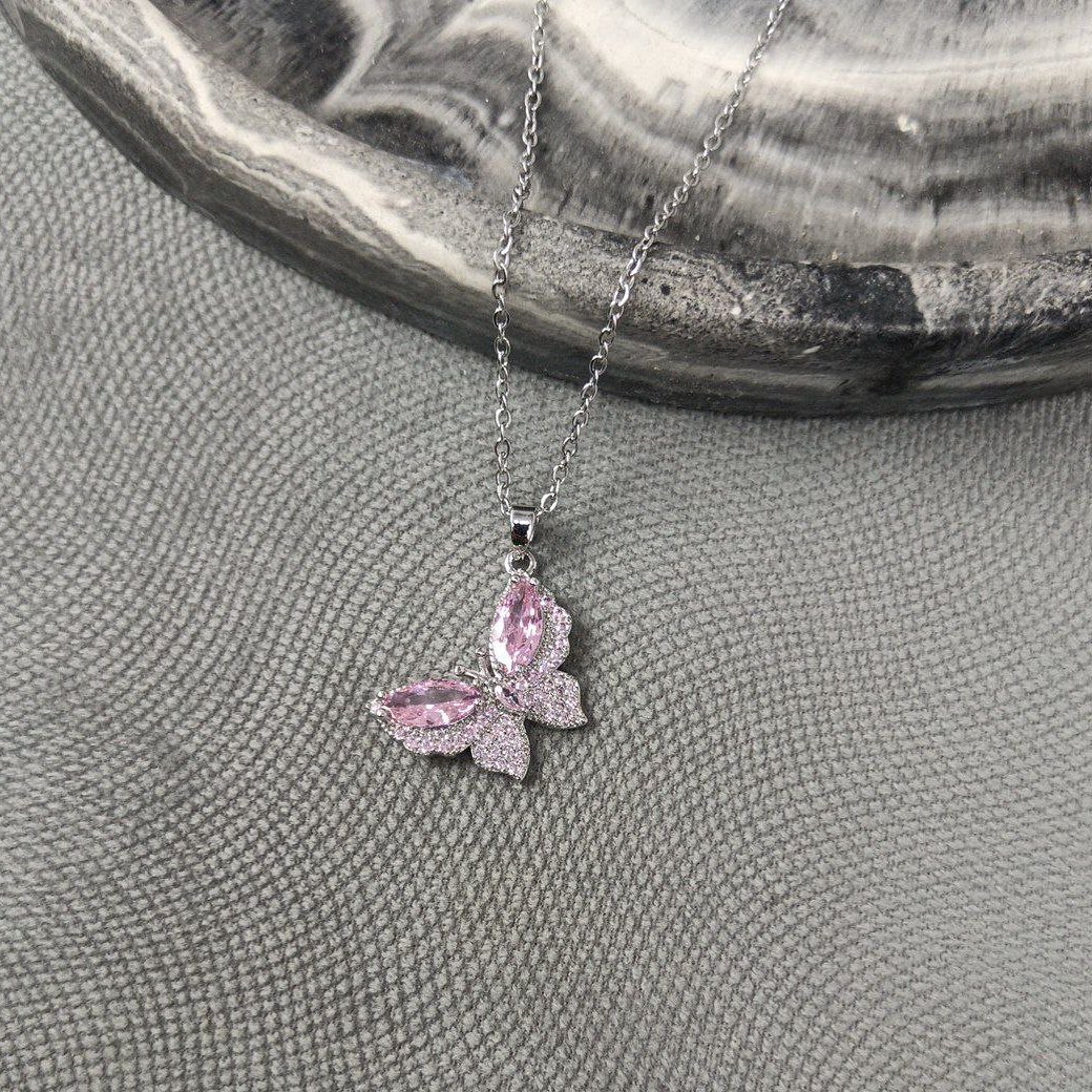 Delicate, graceful, and full of charm — this Beautiful Butterfly Pendant captures the essence of elegance in motion. The pendant features a stunning pink gemstone as the upper body of the butterfly, gracefully paired with a clear crystal below, forming soft, shimmering wings that dance with light.