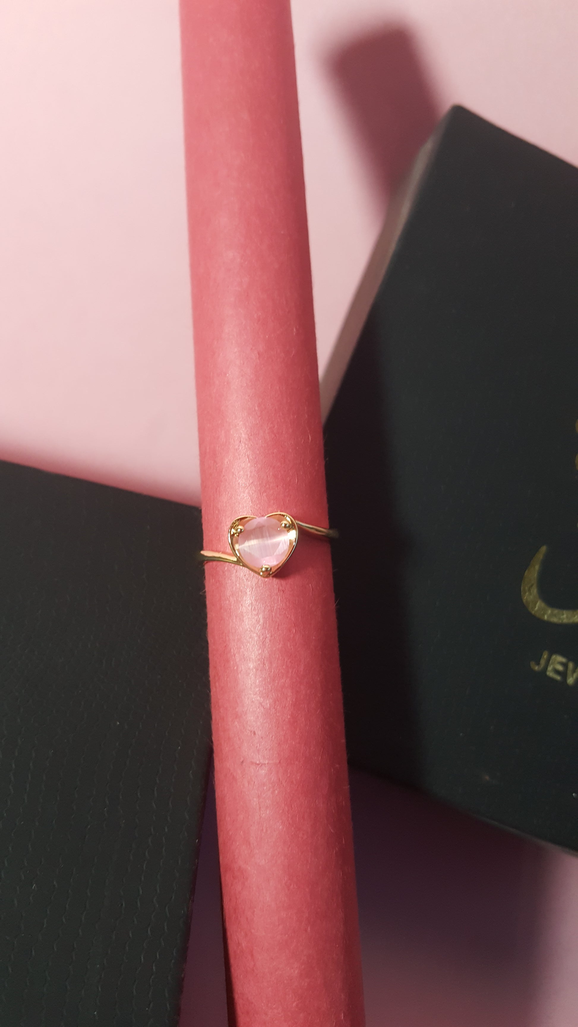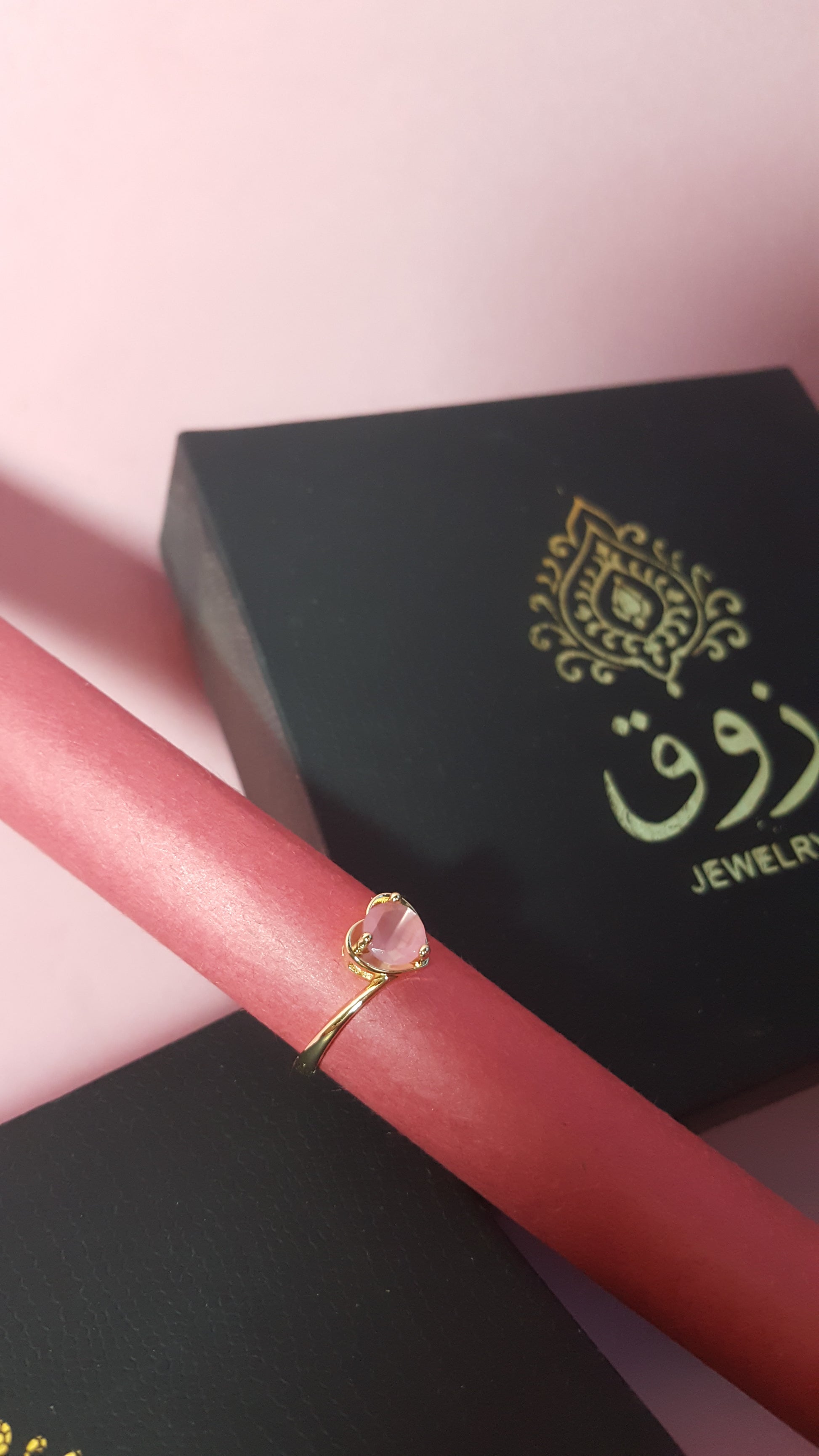 Delicate and heartfelt, the Blush Heart Ring is a perfect balance of simplicity and sentiment. At the center rests a soft pink round-cut stone, gently nestled within a heart-shaped frame — a subtle yet striking design element that brings emotion into elegance.