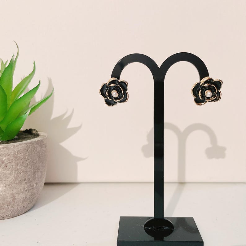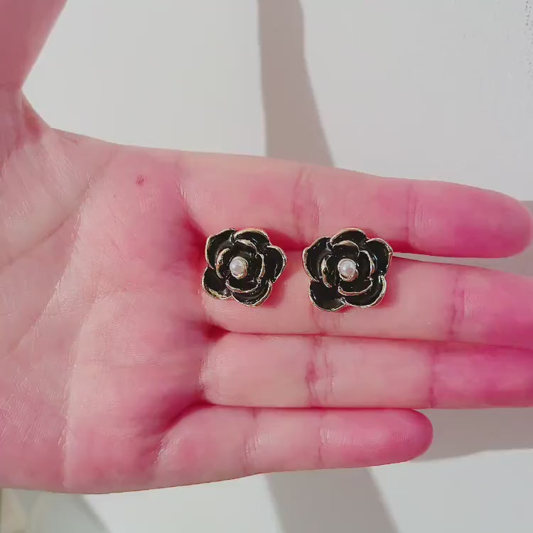 Timeless elegance meets modern charm in these Camellia-inspired stud earrings. Featuring a delicate black enamel flower design with a luminous imitation pearl at the center, these studs capture the essence of classic Parisian beauty. Perfect for both casual sophistication and formal wear, their lightweight yet striking appearance makes them a must-have for every jewelry lover.