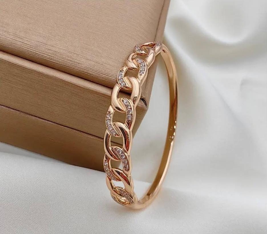 Add a touch of elegance and edge to your jewelry collection with this stunning chain-link bangle bracelet. Designed to stand out, this piece features a bold, contemporary chain pattern seamlessly fused into a sleek bangle silhouette. Sparkling cubic zirconia stones are delicately set along select links, creating a sophisticated shimmer that catches the light with every movement.