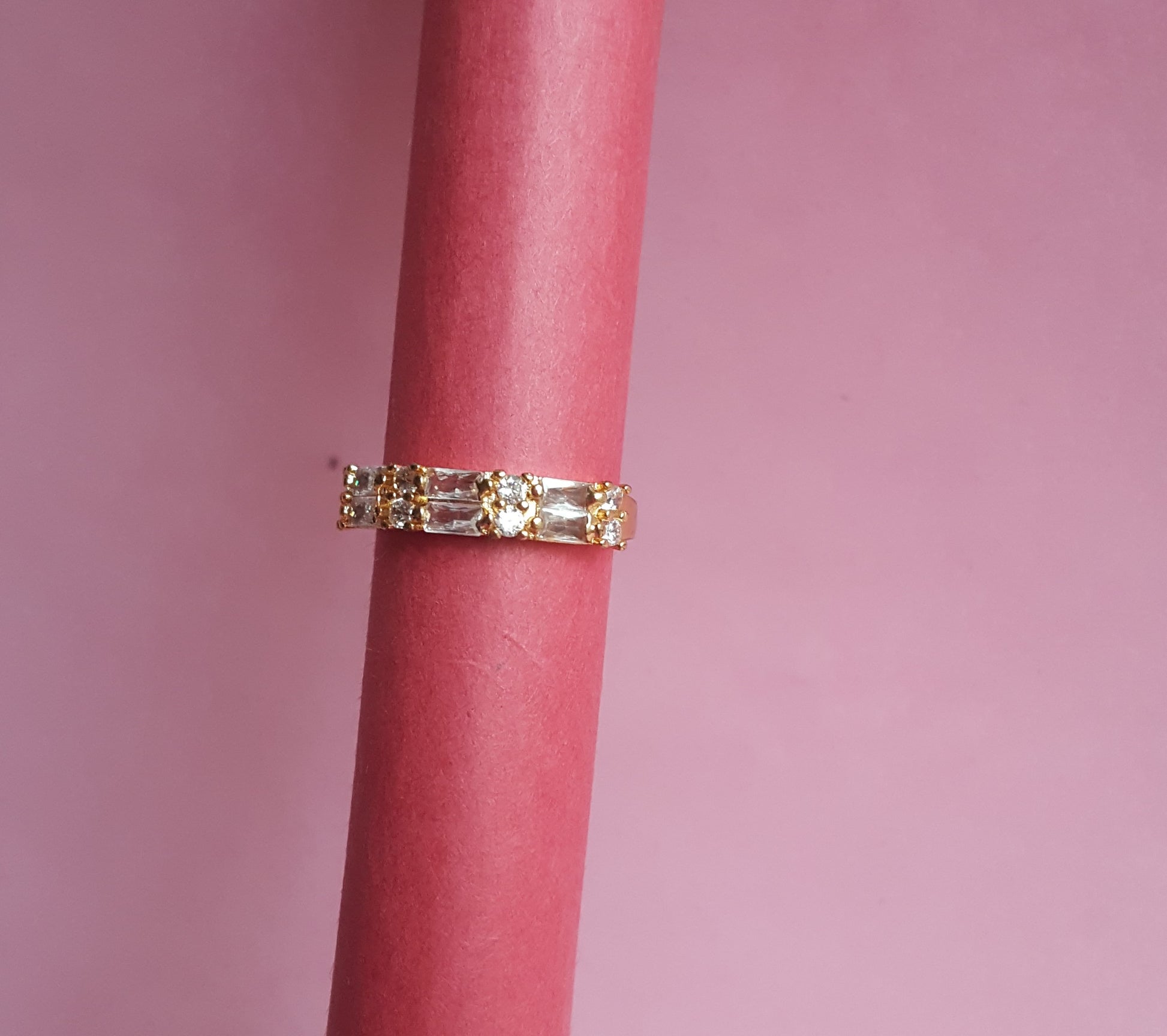 Gold-Toned Baguette & Round-Cut Stone Ring